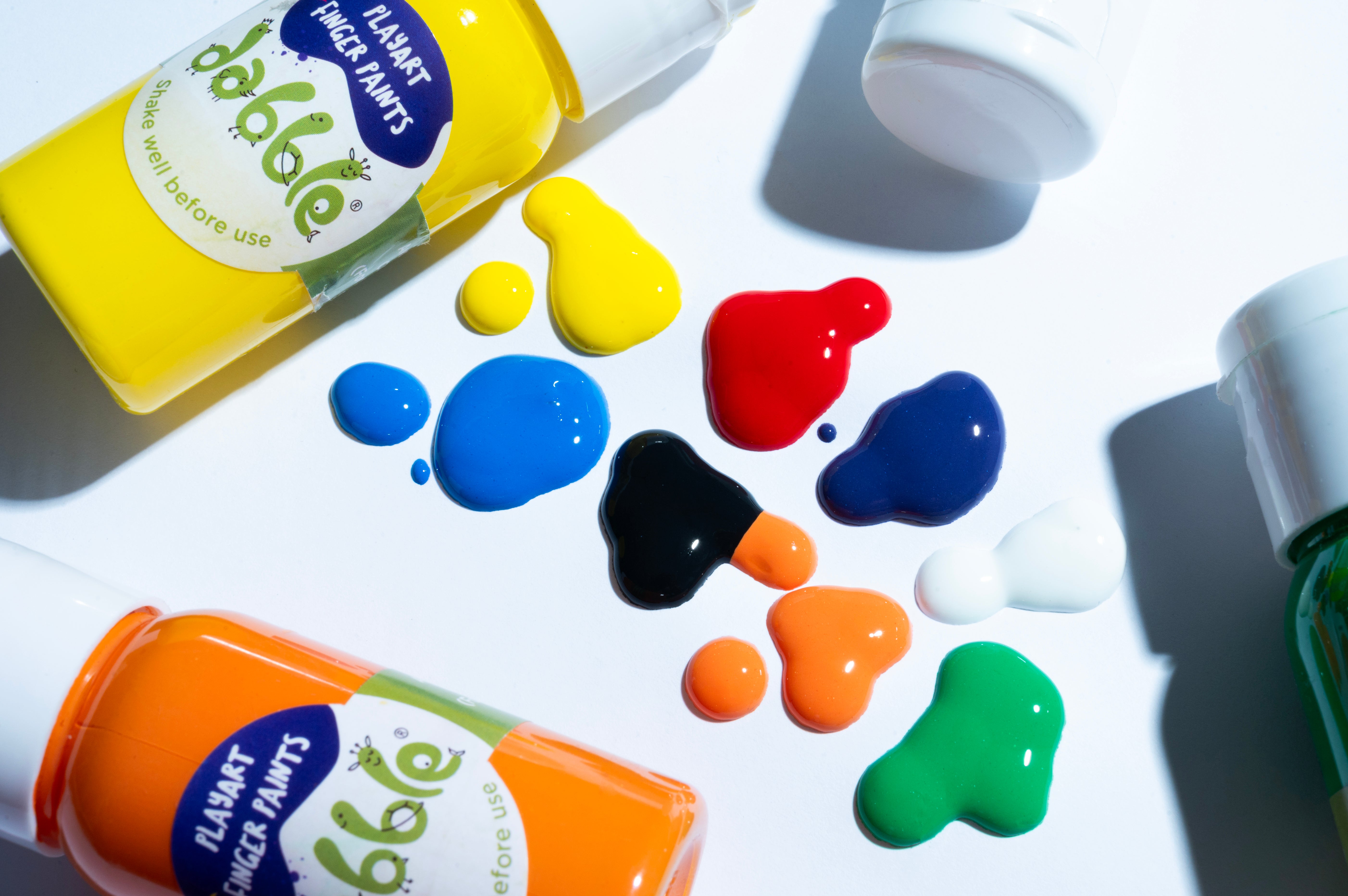💖 The 8 vibrant coloured Dabble finger paints that blend easily, help kids learn how colours mix and create a whole new colour, which is so magical to them!