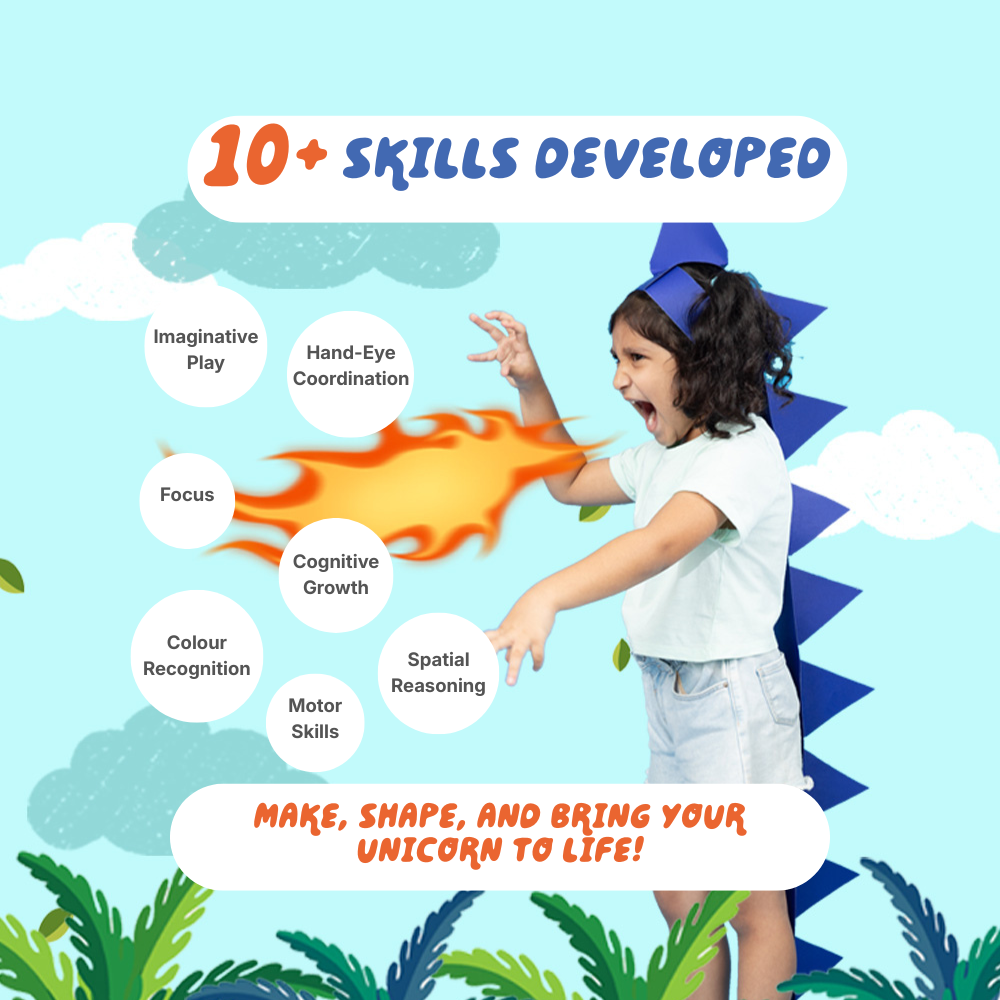 This kit is suitable for 3+ years and above! The kit targets Key Skills like Imaginative Play, Hand-Eye Coordination, and Cognitive Growth, typical of early childhood development.