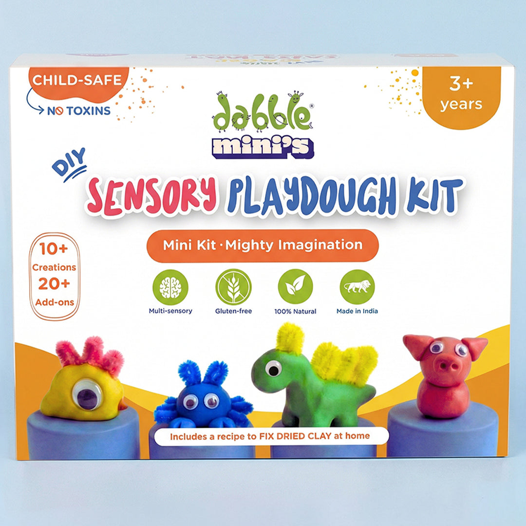 Dabble Sensory Playdough Kit is designed for children aged 3+ years — the ideal age for creative play, character building, and developing fine motor skills.