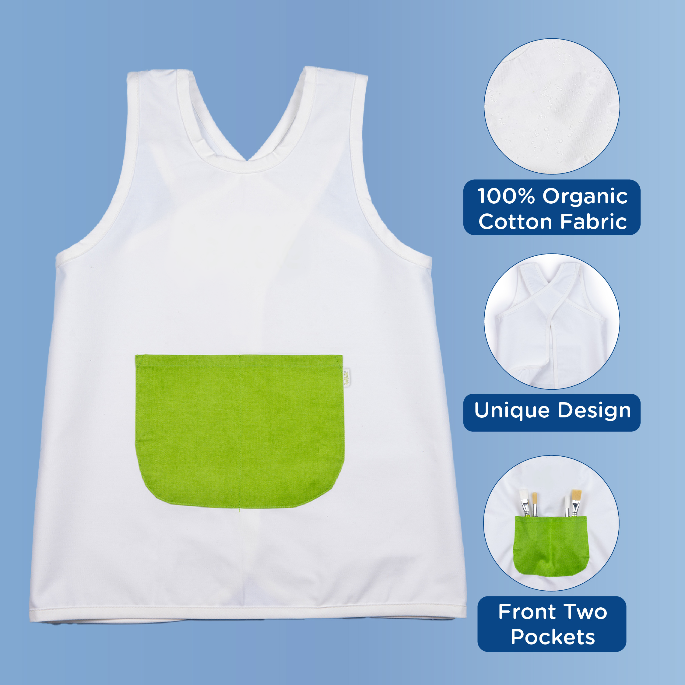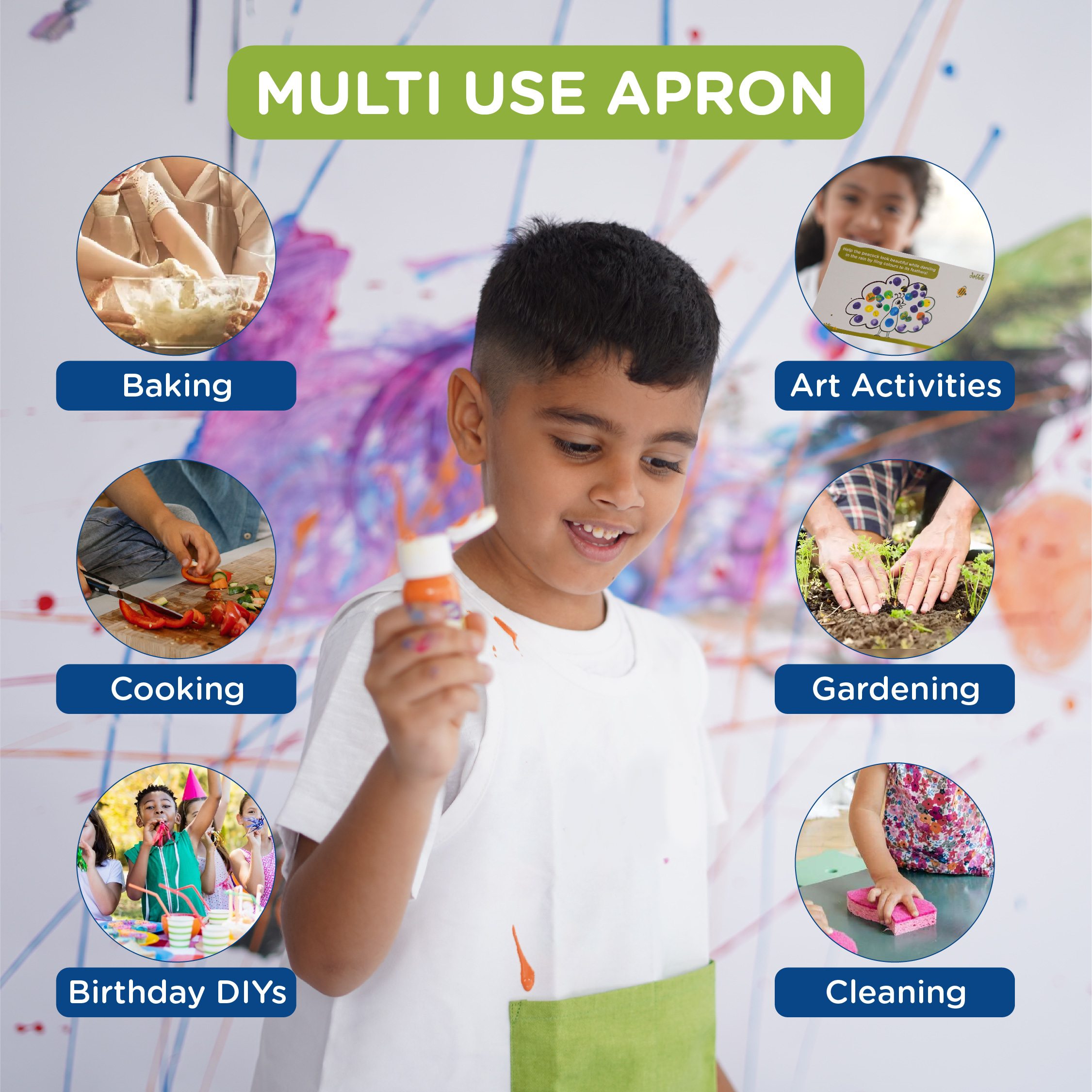 💖Dabble Painting Apron is super Easy to wear- A size inclusive style that perfectly fits till age 5 and can be worn through a simple 3-stage process.