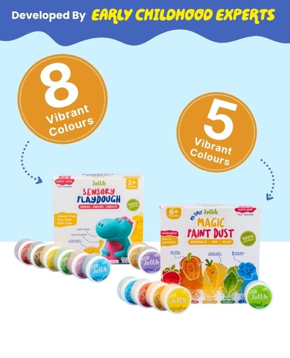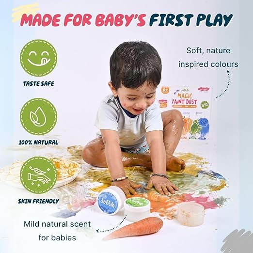 A complete sensory-rich creative kit for kids — from sculpting squishy playdough to painting with magical, taste-safe colours!
