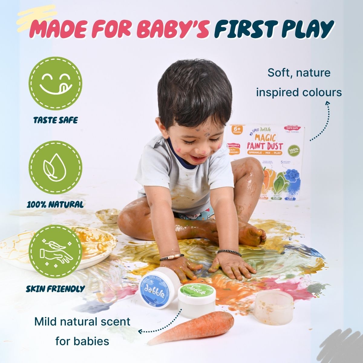 Co-created by scientists, food technologists & early childhood experts, Magic Paint Dust is designed in consultation with occupational therapists and educators to support sensory development and safe exploration from 6+ months.