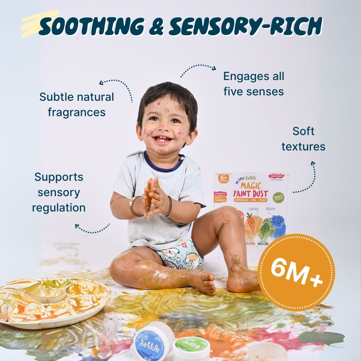 Co-created by scientists, food technologists & early childhood experts, Magic Paint Dust is designed in consultation with occupational therapists and educators to support sensory development and safe exploration from 6+ months.