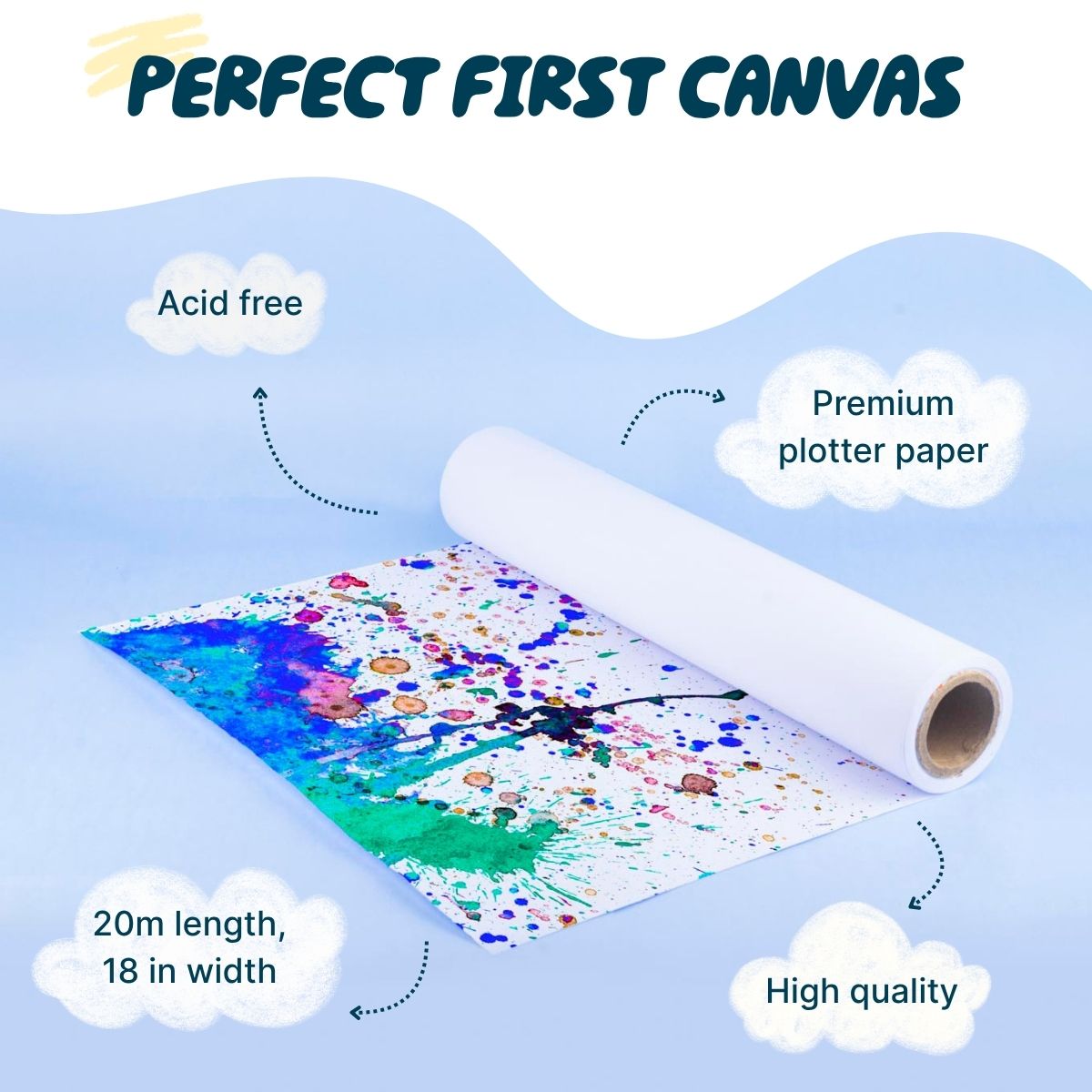 An Art Roll of 20 meters in length by 18 inches in width made with high-quality plotting paper.