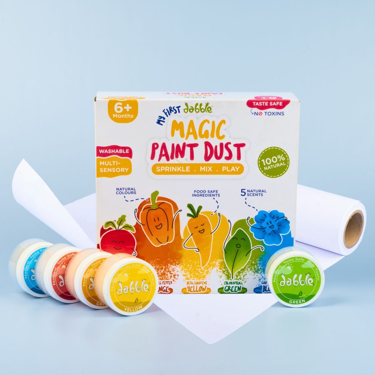 My little girl loves the Magic Paint Dust! The soft textures and natural fragrances keep her calm, and blowing colours on the Art Roll makes a fun, magical, and creative activity.