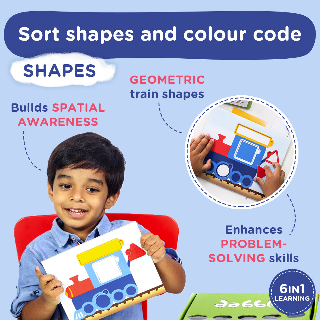 ✅ Geometric Shapes Train – A vibrant sorting and colour-coding train set that develops early math and spatial skills. By piecing together shapes to build the train, children learn shape recognition and spatial awareness.
