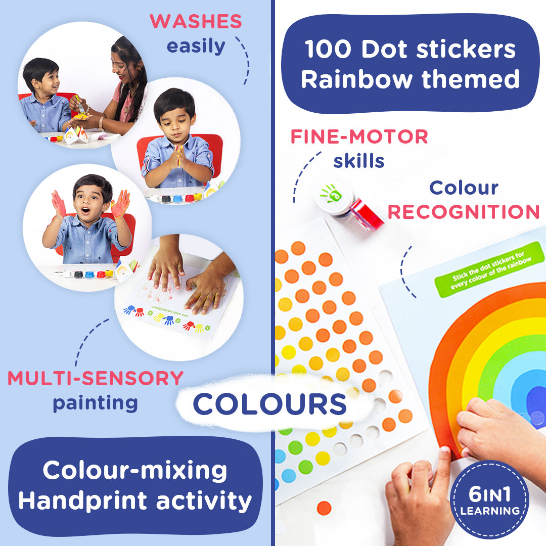 ✅ 100 Dot Stickers – Bring a rainbow to life! An activity that encourages colour recognition, fine motor skills, and imaginative play as kids peel and place each sticker.