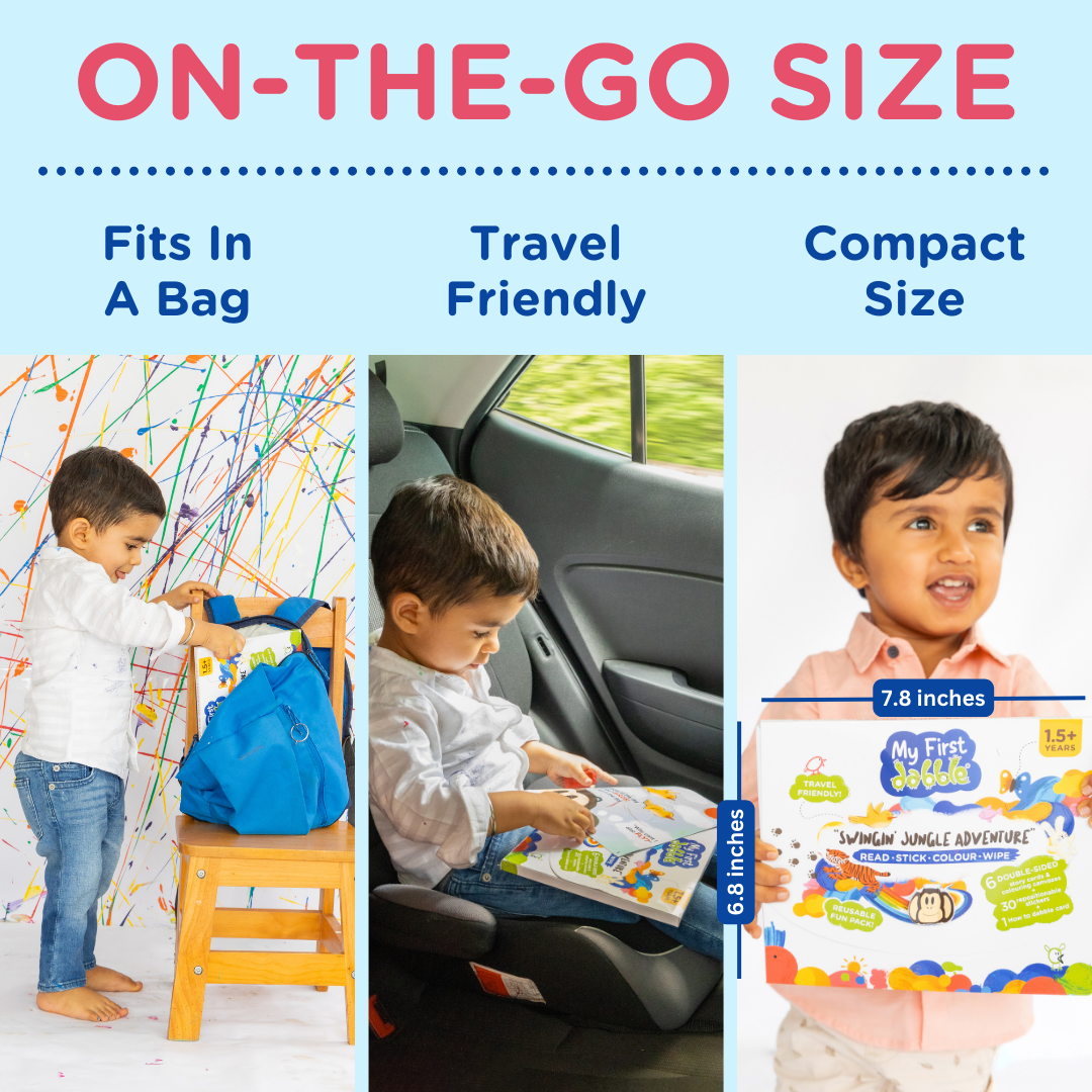 📖 No rules for kids! My first dabble Swingin’ Jungle Adventure includes Double-Sided Story Cards to Read & Colour, Fun Prompts for Parents with Wipeable Sheets to reuse & set the imagination free.
