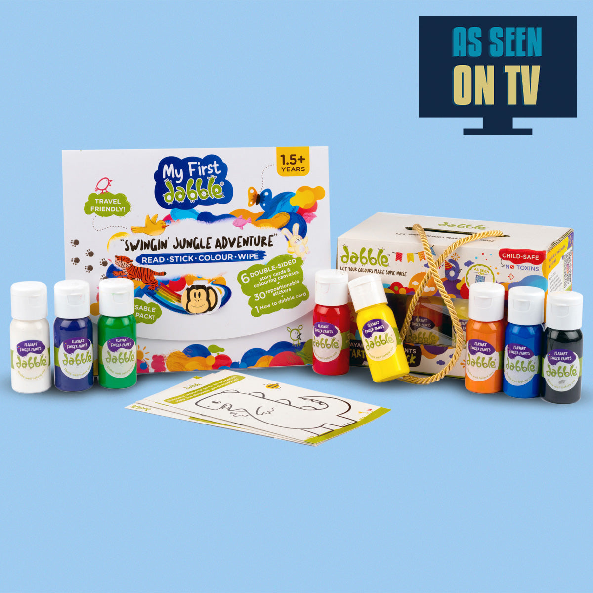 My First Dabble Swingin’ Jungle Adventure & Mini Starter Fun Pack Combo | Reusable Story Card Set & Finger Paints